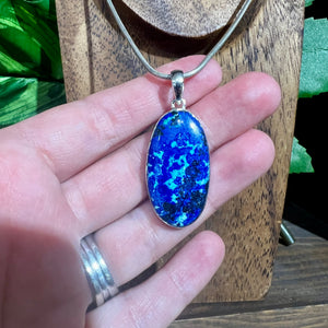 Discover the mesmerizing beauty of our Azurite Pendant, a stunning natural gemstone that captures the eye with its rich, vibrant blue and green hues. Known for its striking appearance and deep mineral tones, this pendant brings an elegant touch to any jewelry collection.